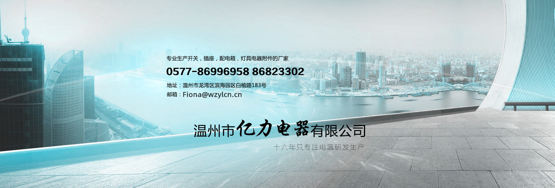 创建于2003年的温州市亿力电器有限公司是专业生产开关,插座,配电箱,灯具电器附件的厂家。产品畅销南美、中东、非洲、东南亚、香港国内外三十多个国家与地区。以优良的品质、合理的价格及良好的信誉,受到客户的一致好评