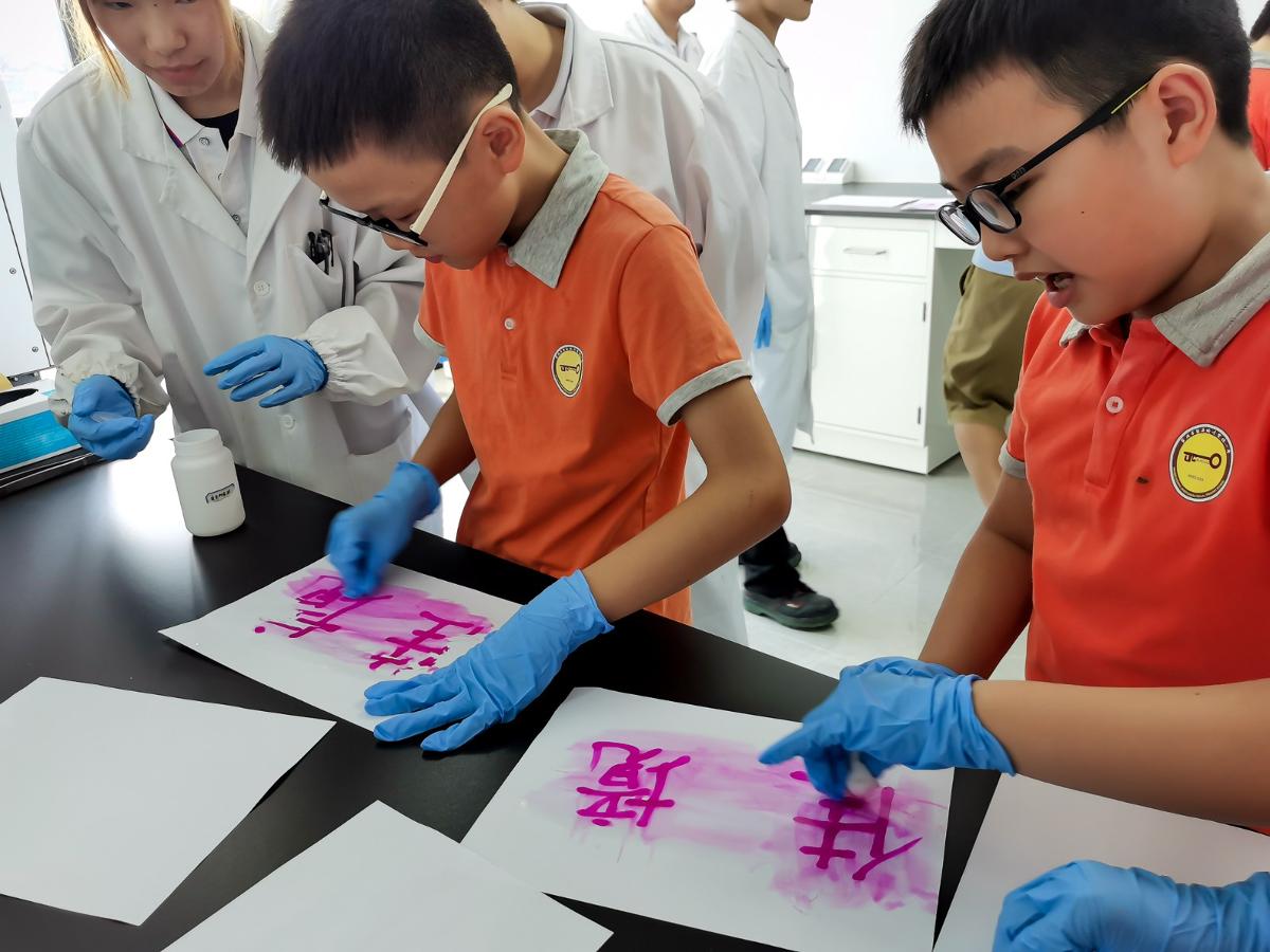 行程的最后一站是參觀實驗室&化學小實驗。在實驗室主任的帶領下,小訪客們認識到了許多高新化學儀器,還親身體驗了神奇的實驗——“化學密函”。