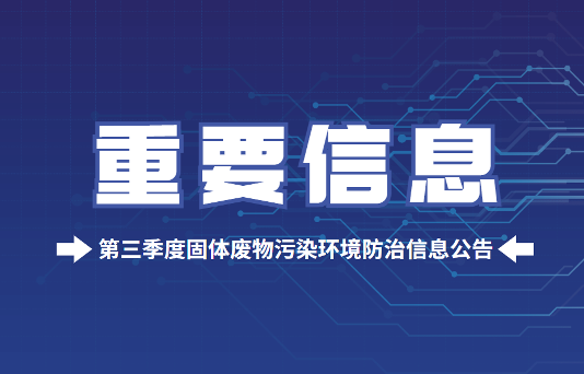 根據《中華人民共和國固體廢物污染環境防治法》要求,現發布浙江佳境環保科技有限公司2022年第三季度固體廢物污染環境防治信息。
